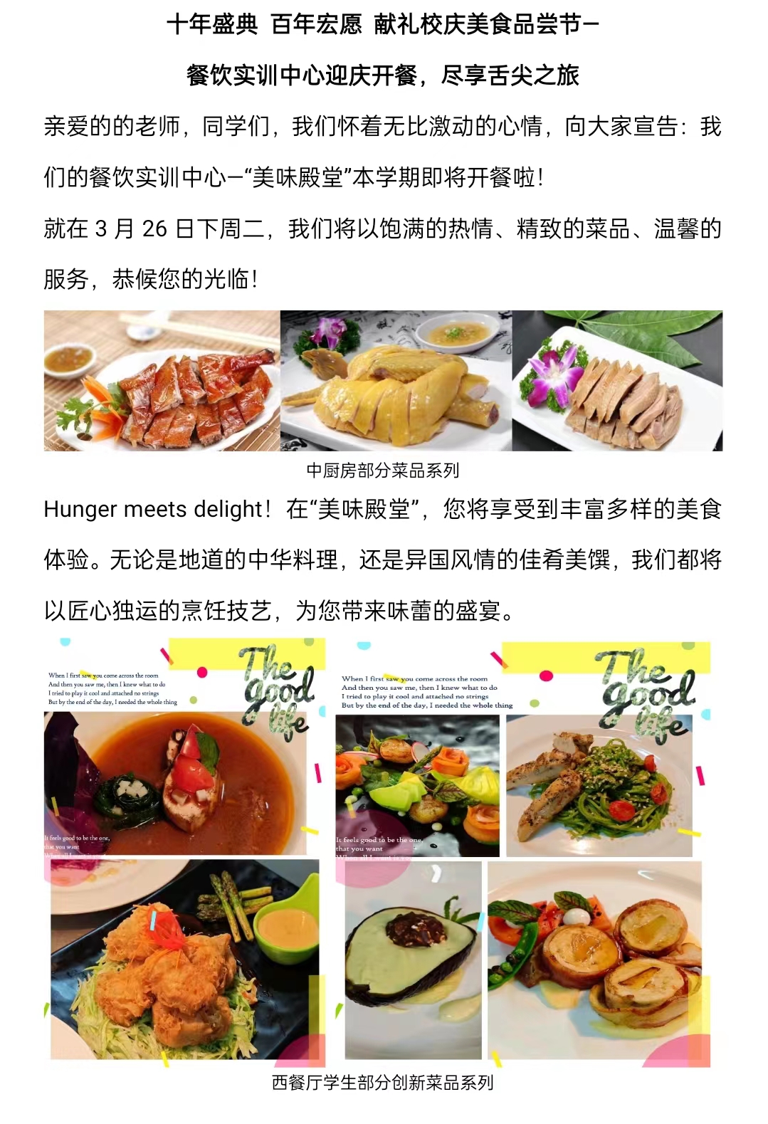 十年盛典 百年宏愿 献礼校庆美食品尝节