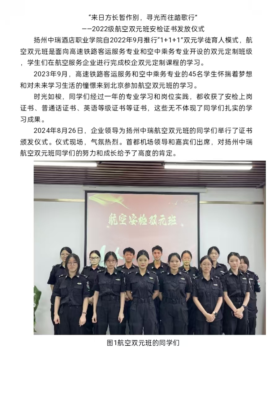 “来日方长暂作别,寻光而往踏歌行” ——2022级航空双元班安检证书发放仪式