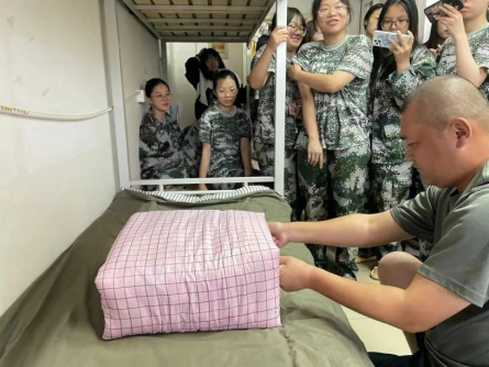 在天气不佳的情况下,我们将训练场地转到了室内,教官对同学们的内务整理进行了讲解和指导。