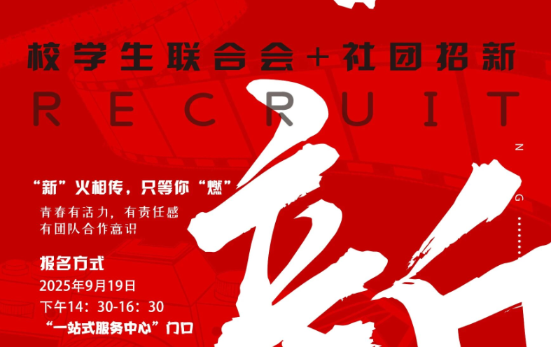 金秋九月 相遇中瑞怀着憧憬进入大学校园中瑞学子们的大学生活更加丰富多彩青春肆意挥洒的广阔舞台--校学生联合会、社团向你发起最真挚的邀请请成为我们大家庭的一员招新时间···