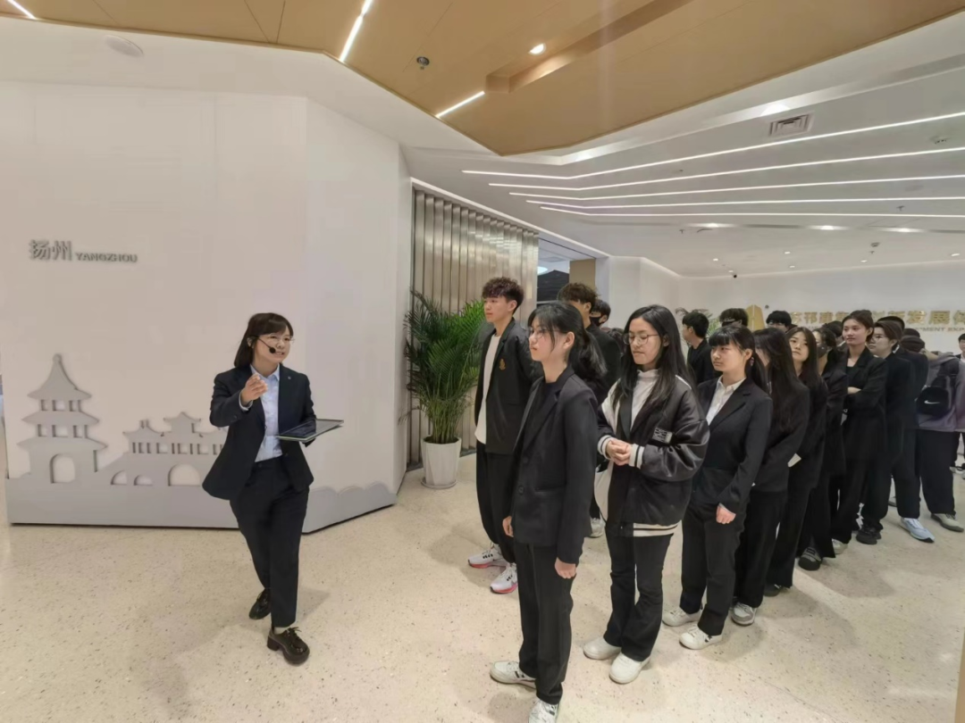 4月27日上午,2022年在扬高校“三进三看”“职业指导校园”(第二期)走进扬州中瑞酒店职业学院。天力建筑学院建筑工程技术和建设工程管理专业21级学生代表前往江苏邗建集团有限公司实地走访参观,并与企业领导、有关负责人代表进行了交流沟通。