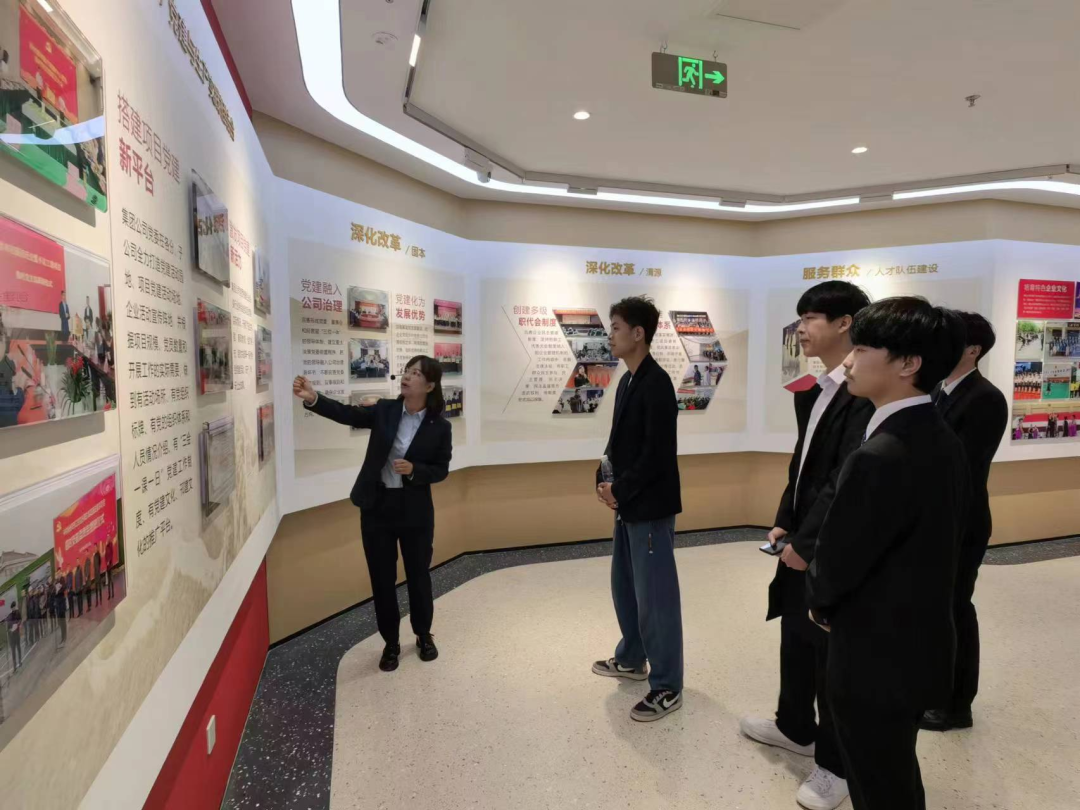 江苏邗建集团有限公司张丹丹主任带领同学们一起参观了集团展厅,为同学们讲解了集团的创建历史、市场拓展、产业升级、工程创优、外向开拓历史、全产业链、集团光辉时刻、创优夺牌、精品工程、绿色建造、全产业生态、智慧模式、新产业、党建新平台。多方面,全方位向同学们展现了江苏邗建集团有限公司。让同学们更直观的了解专业知识和行业前景。