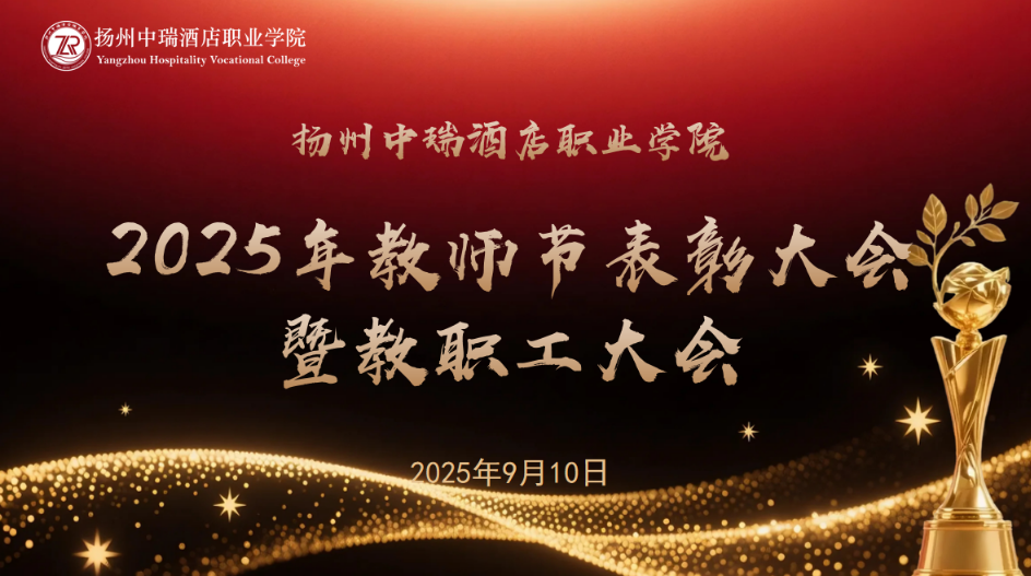 9月10日扬州中瑞酒店职业学院2025年教师节表彰大会暨教职工大会在冬芬馆隆重召开全体教职工参会2025年教师节表彰大会2025年教师节表彰大会以“以教育家精神铸魂强师,谱写教···