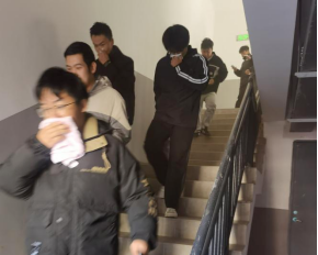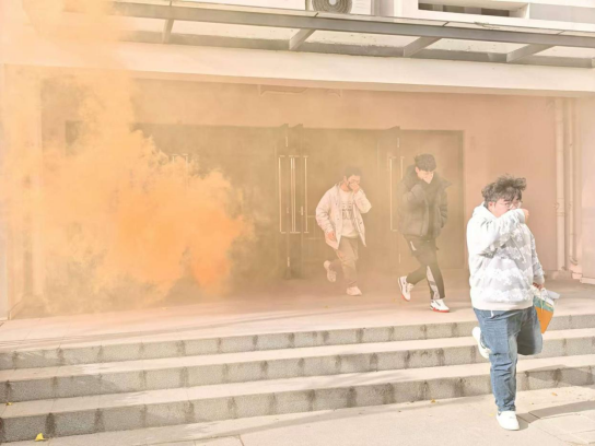 随着警报声响起,宿舍火灾逃生演练活动正式开始。在疏散过程中,同学们俯身前行、捂住口鼻,在辅导员们的指挥下,快速、有序地撤离到指定区域。整个演练过程有条不紊,展现出了同学们较强的火灾应急反应能力。