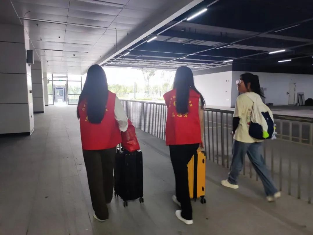 志愿者们集合在各接站点