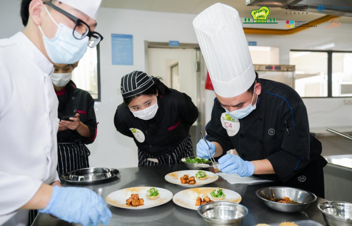 10月18日,2023年世界厨师日来临之际,扬州中瑞酒店职业学院携手万豪国际集团举办“青年厨师‘未来菜单’创新厨艺比赛”活动。来自万豪国际集团江苏区的12家酒店14位厨师与我校14位指导老师、56位学生组成的14个赛队同台竞技。围绕“益于你和地球”主题,各赛队各展烹饪技艺,呈现成出一道道创意精致菜品。