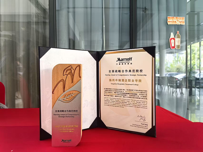 校企十年深耕产教融合共育酒店行业新质人才近日,在扬州中瑞酒店职业学院2025年春季实习就业双选会现场,万豪国际集团为我校颁发“2024-2025年度全面战略合作典范院校”荣誉···