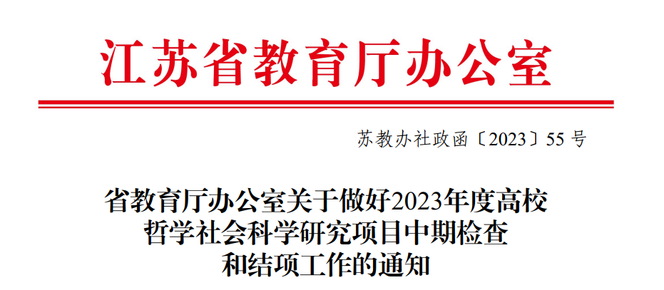 各二级学院:根据《江苏省教育厅高等学校哲学社会科学研究项目管理办法》要求,现组织我校开展2023年度高校哲学社会科学研究项目中期检查和结项工作。