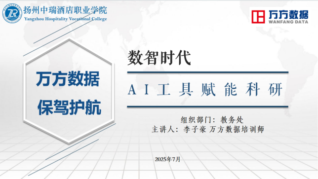 2025年7月3日,我校教务处组织开展“数智时代AI工具赋能科研”专题培训,全校130余名教职工悉数参与,现场学习氛围热烈浓厚。本次培训由教务处副处长谭泉泉担任主持。本次培···