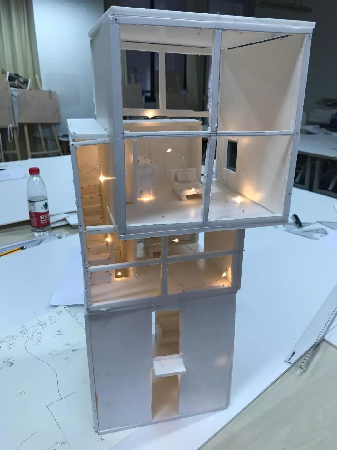 作品说明:以日本大师安藤忠雄设计的4×4混凝土住宅为例,进行模型制作。从中深入了解到了空间组织构架以及空间构成方式,体会到了立体构成的魅力。