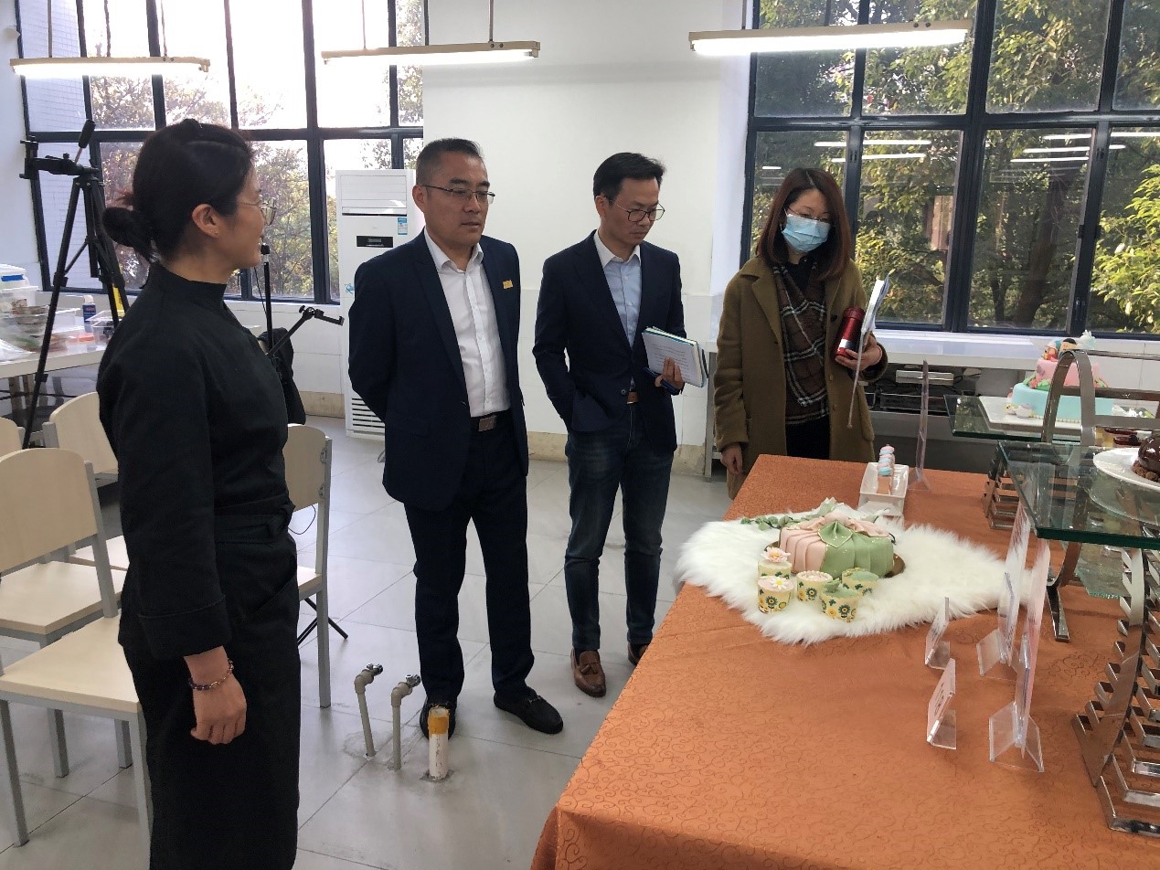 (左二:学校书记赵毅、左三:校长助理黄捷、左四:酒店学院副院长萧昱、左一:田野惠子老师)