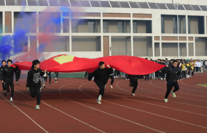 伴随着铿锵有力的《少年中国说》,国旗表演方阵入场。少年们高举国旗奋力跑过主席台,飞一般的速度,不仅跑出了对于祖国的荣耀和自豪,更跑出了中瑞学子的青春风采。