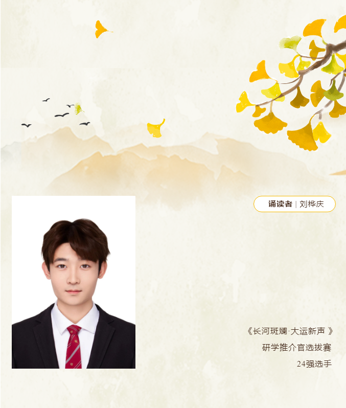 近日,在扬州运河三湾景区的官方账号上,刊登了我校高乘2304班刘桦庆诵读的文章《诗意三湾 | 木叶落,秋分至》。该文紧扣二十四节气中的秋分时节,引用文学经典诗词,生动展现了运河三湾景区在秋分时节的独特韵味与诗意风情。作为十周年校庆的主持人,刘桦庆同学以其温润如玉的嗓音,仿佛将我们带入了那个木叶纷飞、秋意渐浓的三湾河畔,让人仿佛能听见秋风轻拂水面的声音,感受到那份宁静与美好。