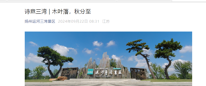 近日,在扬州运河三湾景区的官方账号上,刊登了我校高乘2304班刘桦庆诵读的文章《诗意三湾 | 木叶落,秋分至》。该文紧扣二十四节气中的秋分时节,引用文学经典诗词,生动展···